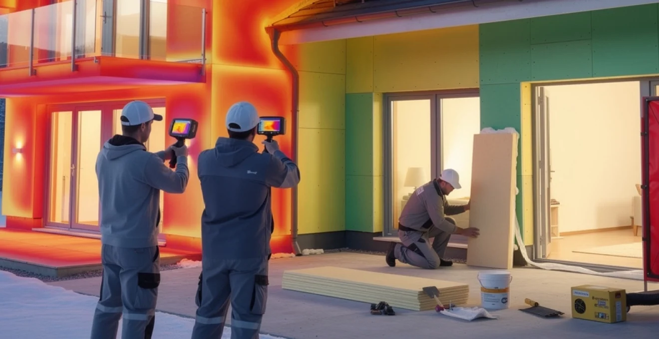 Un audit énergétique par thermographie se réalise idéalement en période froide, avec un écart de température d’au moins 10 K entre l’intérieur et l’extérieur. L’opérateur balaye alors les façades, les toitures et les parois intérieures pour repérer les discontinuités : nez de dalle rayonnant, tableaux de fenêtres plus froids, linteaux visibles, dalles de balcons « lumineuses ». À l’intérieur, la thermographie permet aussi d’identifier les zones de condensation potentielle, les fuites d’air parasites et les désordres cachés derrière un doublage.